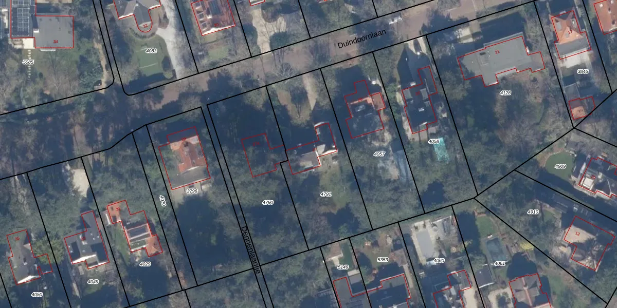 Het perceel waarop Duindoornlaan 27 staat heeft een oppervlakte van 1117 m². Dit is een zeer groot perceel. De perceeloppervlakte wordt geregistreerd door het Kadaster. Gedetailleerde informatie over de maten van dit perceel kunt u vinden in het rapport Kadastrale kaart met maatvoering van Duindoornlaan 27.
