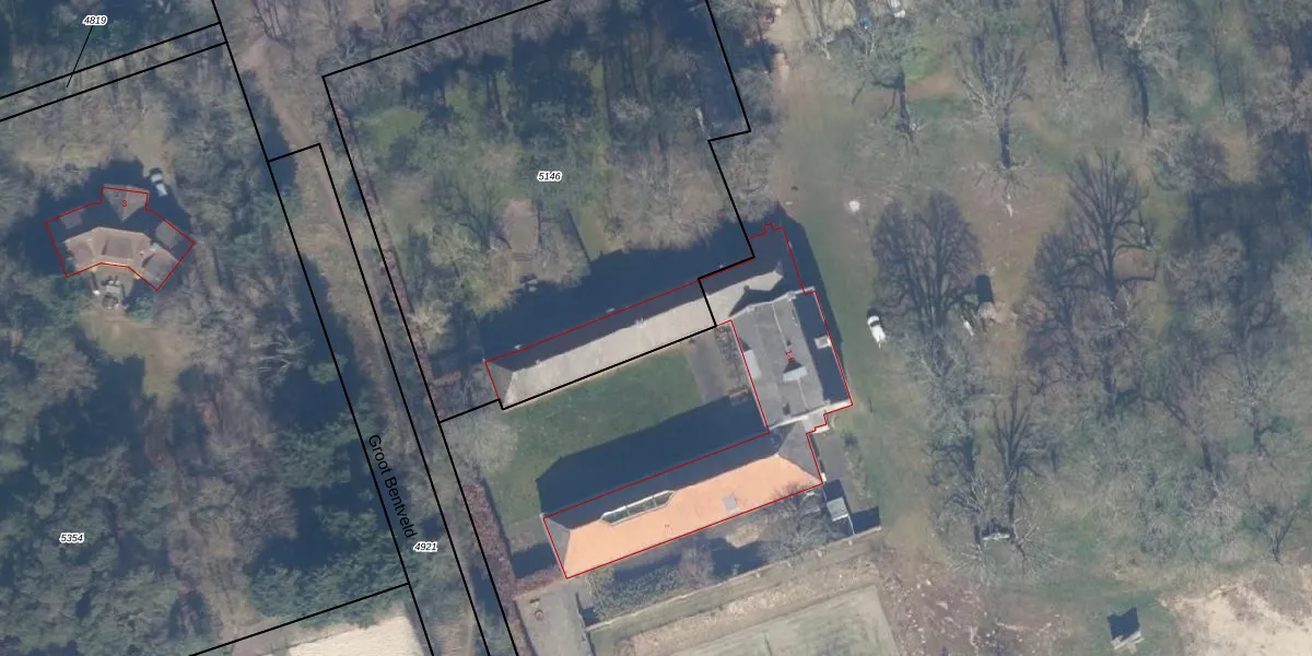 Het perceel waarop Groot Bentveld 1 staat heeft een oppervlakte van 3070 m². Dit is een zeer groot perceel. De perceeloppervlakte wordt geregistreerd door het Kadaster. Gedetailleerde informatie over de maten van dit perceel kunt u vinden in het rapport Kadastrale kaart met maatvoering van Groot Bentveld 1.