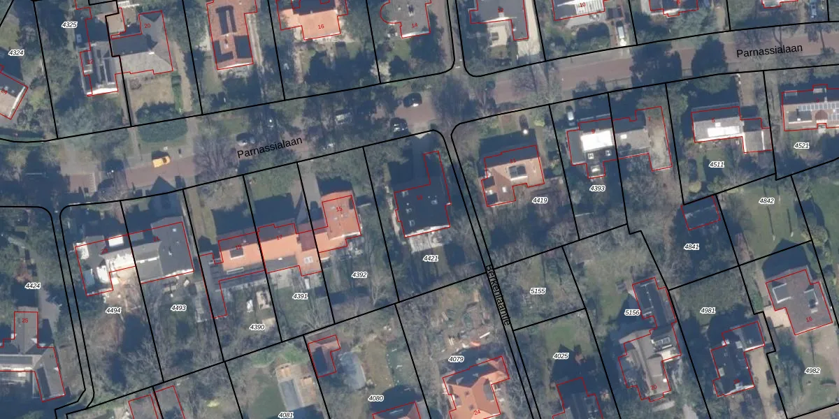 Het perceel waarop Parnassialaan 13 staat heeft een oppervlakte van 751 m². Dit is een groot perceel. De perceeloppervlakte wordt geregistreerd door het Kadaster. Gedetailleerde informatie over de maten van dit perceel kunt u vinden in het rapport Kadastrale kaart met maatvoering van Parnassialaan 13.