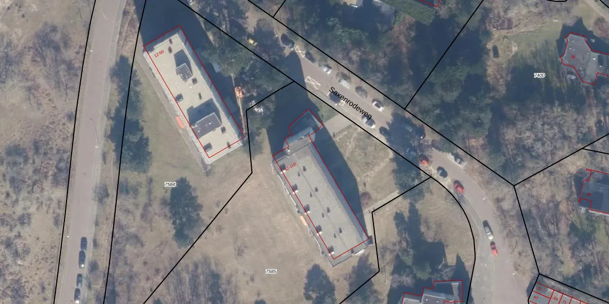 Het perceel waarop Saxenrodeweg 56 staat heeft een oppervlakte van 5025 m². Dit is een zeer groot perceel. De perceeloppervlakte wordt geregistreerd door het Kadaster. Gedetailleerde informatie over de maten van dit perceel kunt u vinden in het rapport Kadastrale kaart met maatvoering van Saxenrodeweg 56.