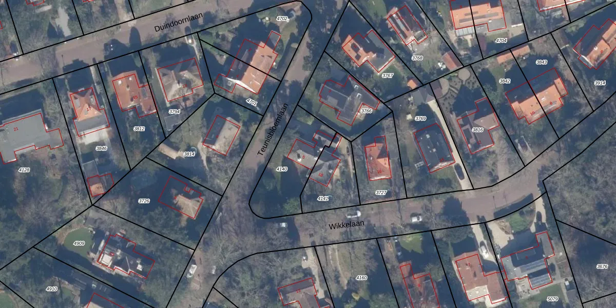 Teunisbloemlaan 5 is gelegen op kadastraal perceel ZVT00A4140. Deze kadastrale aanduiding is uniek en wordt gebruikt door het Kadaster om eigendomsrechten en andere zakelijke rechten vast te leggen. Het perceel maakt onderdeel uit van de kadastrale gemeente Zandvoort.