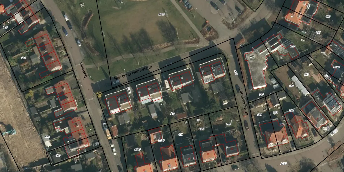 Het perceel waarop Bisschop Hamerlaan 23 staat heeft een oppervlakte van 2275 m². Dit is een zeer groot perceel. De perceeloppervlakte wordt geregistreerd door het Kadaster. Gedetailleerde informatie over de maten van dit perceel kunt u vinden in het rapport Kadastrale kaart met maatvoering van Bisschop Hamerlaan 23.