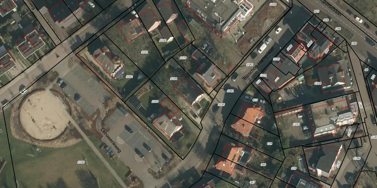 Het perceel waarop Bisschop Hamerlaan 6 staat heeft een oppervlakte van 559 m². Dit is een groot perceel. De perceeloppervlakte wordt geregistreerd door het Kadaster. Gedetailleerde informatie over de maten van dit perceel kunt u vinden in het rapport Kadastrale kaart met maatvoering van Bisschop Hamerlaan 6.