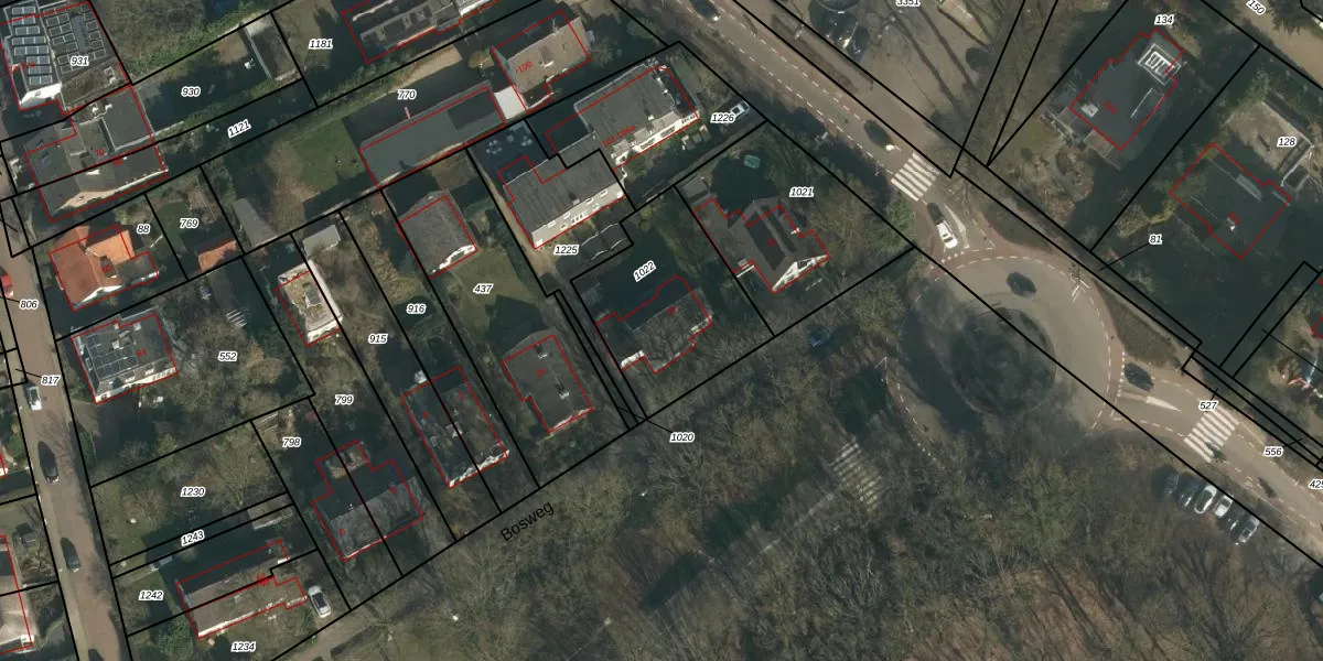 Bosweg 2-b is gelegen op kadastraal perceel GBK00K1022. Deze kadastrale aanduiding is uniek en wordt gebruikt door het Kadaster om eigendomsrechten en andere zakelijke rechten vast te leggen. Het perceel maakt onderdeel uit van de kadastrale gemeente Groesbeek.