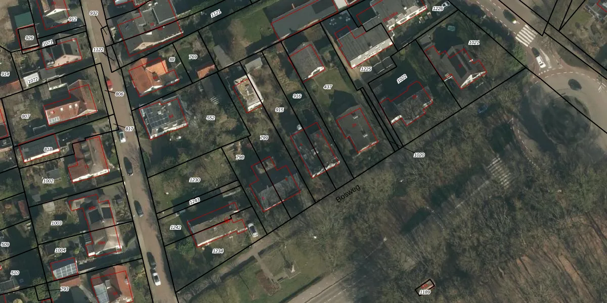 Het perceel waarop Bosweg 4 staat heeft een oppervlakte van 415 m². Dit is een groot perceel. De perceeloppervlakte wordt geregistreerd door het Kadaster. Gedetailleerde informatie over de maten van dit perceel kunt u vinden in het rapport Kadastrale kaart met maatvoering van Bosweg 4.
