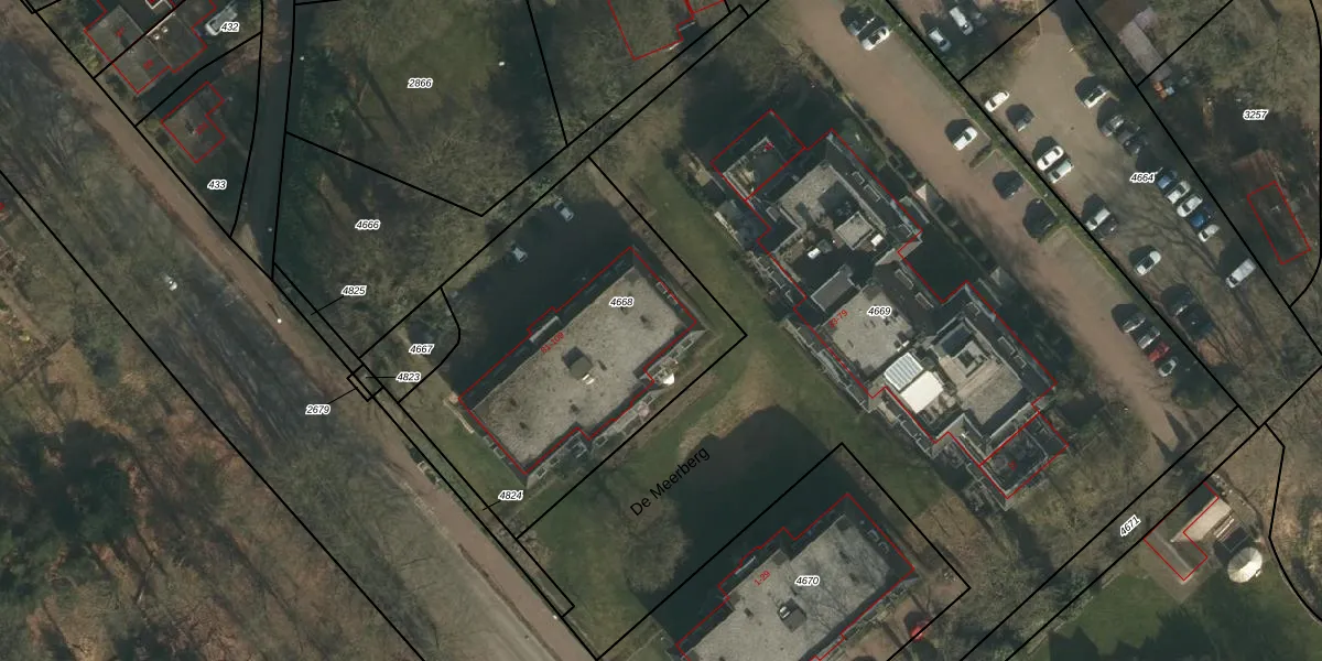 Het perceel waarop De Meerberg 91 staat heeft een oppervlakte van 1618 m². Dit is een zeer groot perceel. De perceeloppervlakte wordt geregistreerd door het Kadaster. Gedetailleerde informatie over de maten van dit perceel kunt u vinden in het rapport Kadastrale kaart met maatvoering van De Meerberg 91.