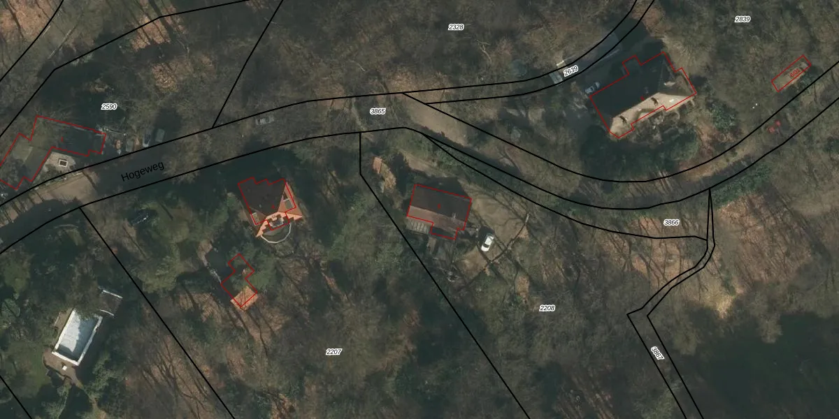 Het perceel waarop Hogeweg 5 staat heeft een oppervlakte van 3395 m². Dit is een zeer groot perceel. De perceeloppervlakte wordt geregistreerd door het Kadaster. Gedetailleerde informatie over de maten van dit perceel kunt u vinden in het rapport Kadastrale kaart met maatvoering van Hogeweg 5.