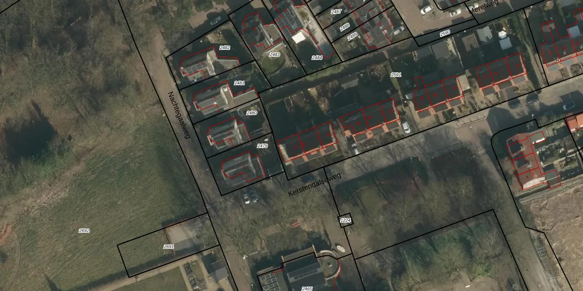 Kerstendalseweg 42 is gelegen op kadastraal perceel GBK00H2591. Deze kadastrale aanduiding is uniek en wordt gebruikt door het Kadaster om eigendomsrechten en andere zakelijke rechten vast te leggen. Het perceel maakt onderdeel uit van de kadastrale gemeente Groesbeek.