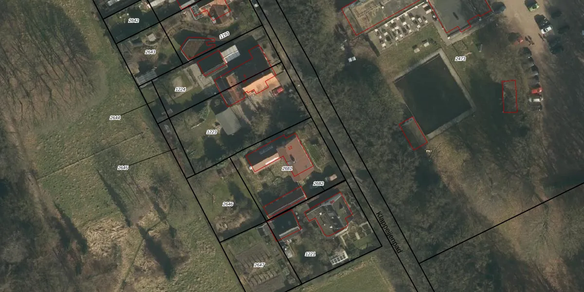 Klappeijenpad 12 is gelegen op kadastraal perceel GBK00H2681. Deze kadastrale aanduiding is uniek en wordt gebruikt door het Kadaster om eigendomsrechten en andere zakelijke rechten vast te leggen. Het perceel maakt onderdeel uit van de kadastrale gemeente Groesbeek.