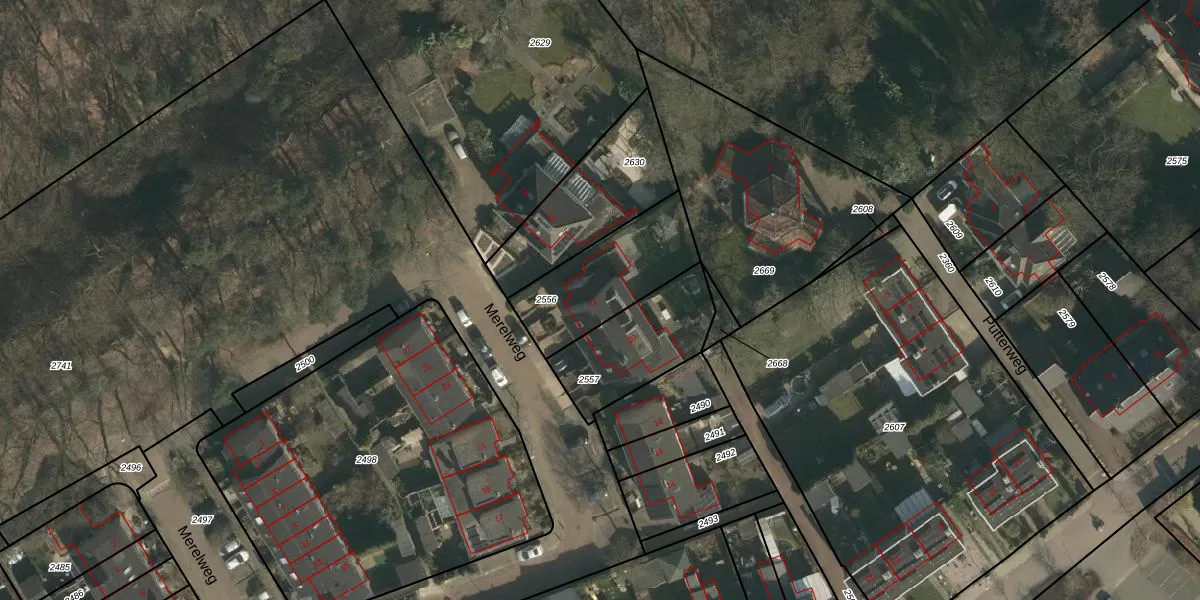 Merelweg 22 is gelegen op kadastraal perceel GBK00H2556. Deze kadastrale aanduiding is uniek en wordt gebruikt door het Kadaster om eigendomsrechten en andere zakelijke rechten vast te leggen. Het perceel maakt onderdeel uit van de kadastrale gemeente Groesbeek.