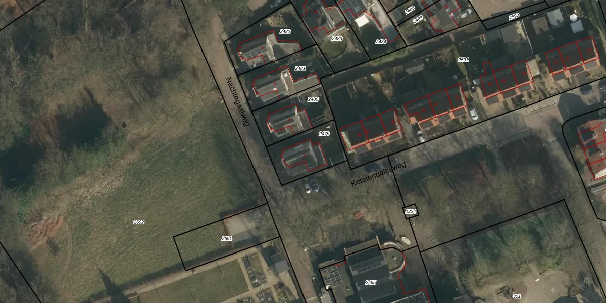 Nachtegaalweg 2 is gelegen op kadastraal perceel GBK00H2479. Deze kadastrale aanduiding is uniek en wordt gebruikt door het Kadaster om eigendomsrechten en andere zakelijke rechten vast te leggen. Het perceel maakt onderdeel uit van de kadastrale gemeente Groesbeek.
