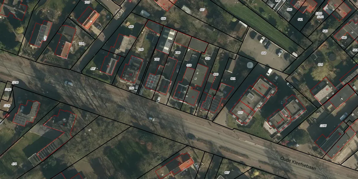 Het perceel waarop Oude Kleefsebaan 19 staat heeft een oppervlakte van 355 m². Dit is een groot perceel. De perceeloppervlakte wordt geregistreerd door het Kadaster. Gedetailleerde informatie over de maten van dit perceel kunt u vinden in het rapport Kadastrale kaart met maatvoering van Oude Kleefsebaan 19.
