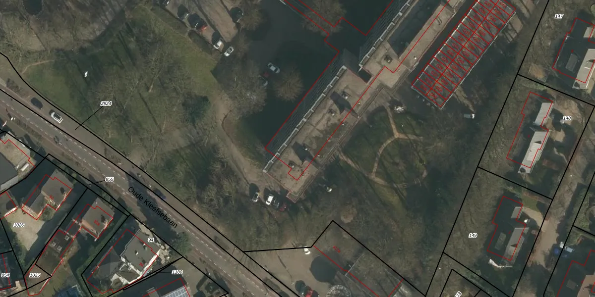 Het perceel waarop Oude Kleefsebaan 255 staat heeft een oppervlakte van 5,8 ha. Dit is een zeer groot perceel. De perceeloppervlakte wordt geregistreerd door het Kadaster. Gedetailleerde informatie over de maten van dit perceel kunt u vinden in het rapport Kadastrale kaart met maatvoering van Oude Kleefsebaan 255.