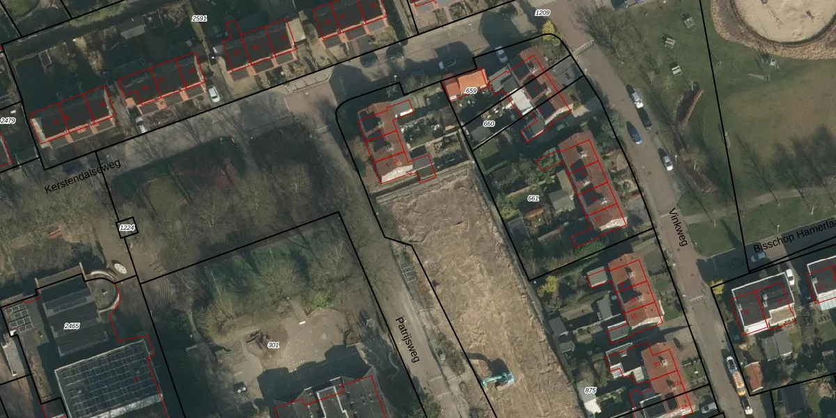 Patrijsweg 5 is gelegen op kadastraal perceel GBK00K875. Deze kadastrale aanduiding is uniek en wordt gebruikt door het Kadaster om eigendomsrechten en andere zakelijke rechten vast te leggen. Het perceel maakt onderdeel uit van de kadastrale gemeente Groesbeek.