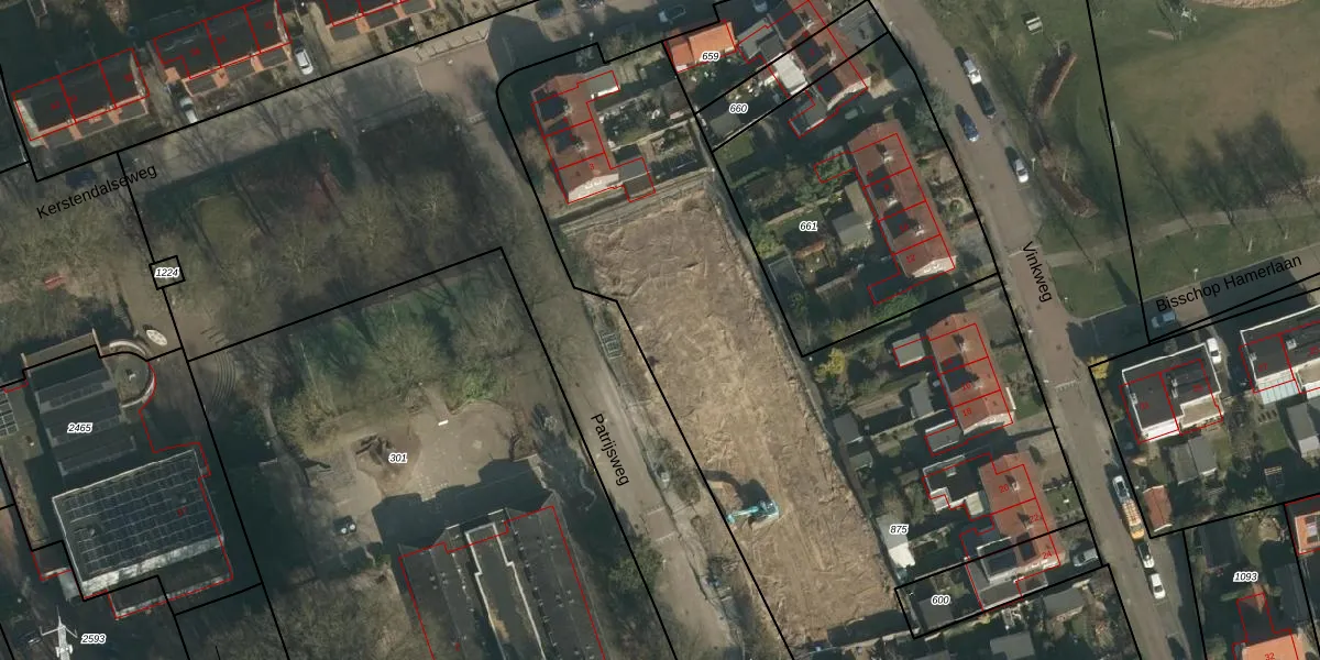 Patrijsweg 9 is gelegen op kadastraal perceel GBK00K875. Deze kadastrale aanduiding is uniek en wordt gebruikt door het Kadaster om eigendomsrechten en andere zakelijke rechten vast te leggen. Het perceel maakt onderdeel uit van de kadastrale gemeente Groesbeek.