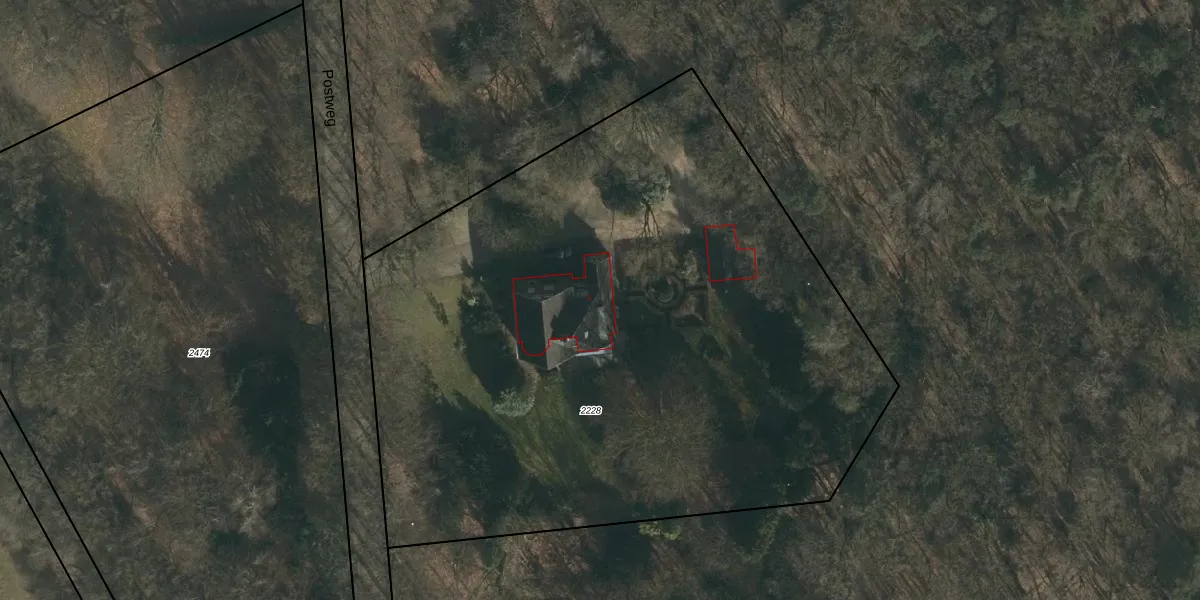 Het perceel waarop Postweg 1 staat heeft een oppervlakte van 4586 m². Dit is een zeer groot perceel. De perceeloppervlakte wordt geregistreerd door het Kadaster. Gedetailleerde informatie over de maten van dit perceel kunt u vinden in het rapport Kadastrale kaart met maatvoering van Postweg 1.