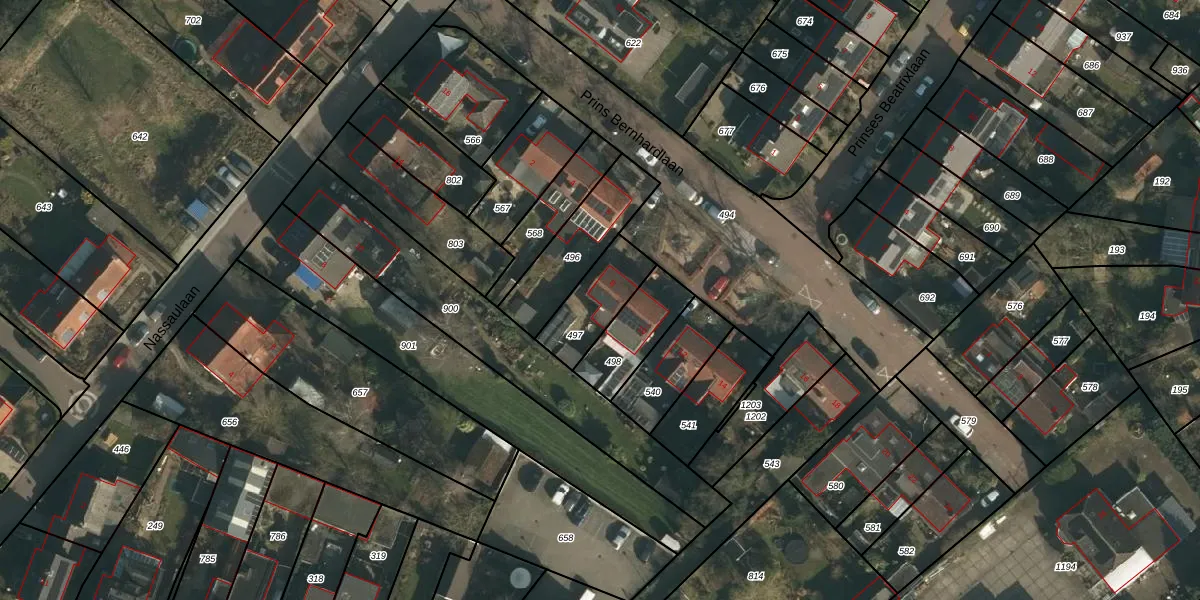Prins Bernhardlaan 8 is gelegen op kadastraal perceel GBK00K497. Deze kadastrale aanduiding is uniek en wordt gebruikt door het Kadaster om eigendomsrechten en andere zakelijke rechten vast te leggen. Het perceel maakt onderdeel uit van de kadastrale gemeente Groesbeek.