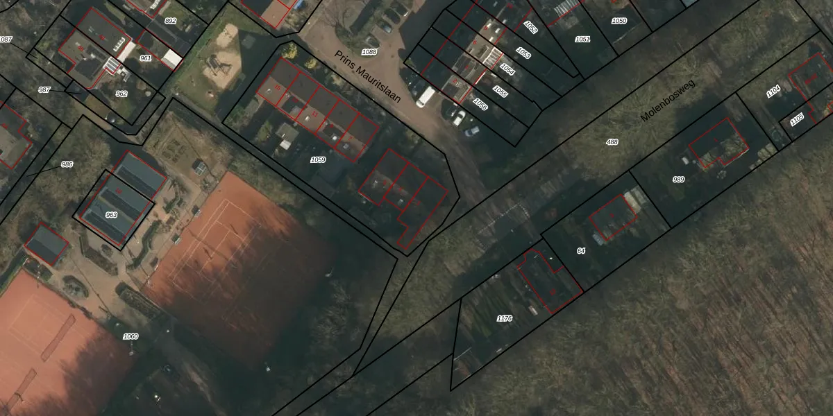 Prins Mauritslaan 1 is gelegen op kadastraal perceel GBK00K1059. Deze kadastrale aanduiding is uniek en wordt gebruikt door het Kadaster om eigendomsrechten en andere zakelijke rechten vast te leggen. Het perceel maakt onderdeel uit van de kadastrale gemeente Groesbeek.