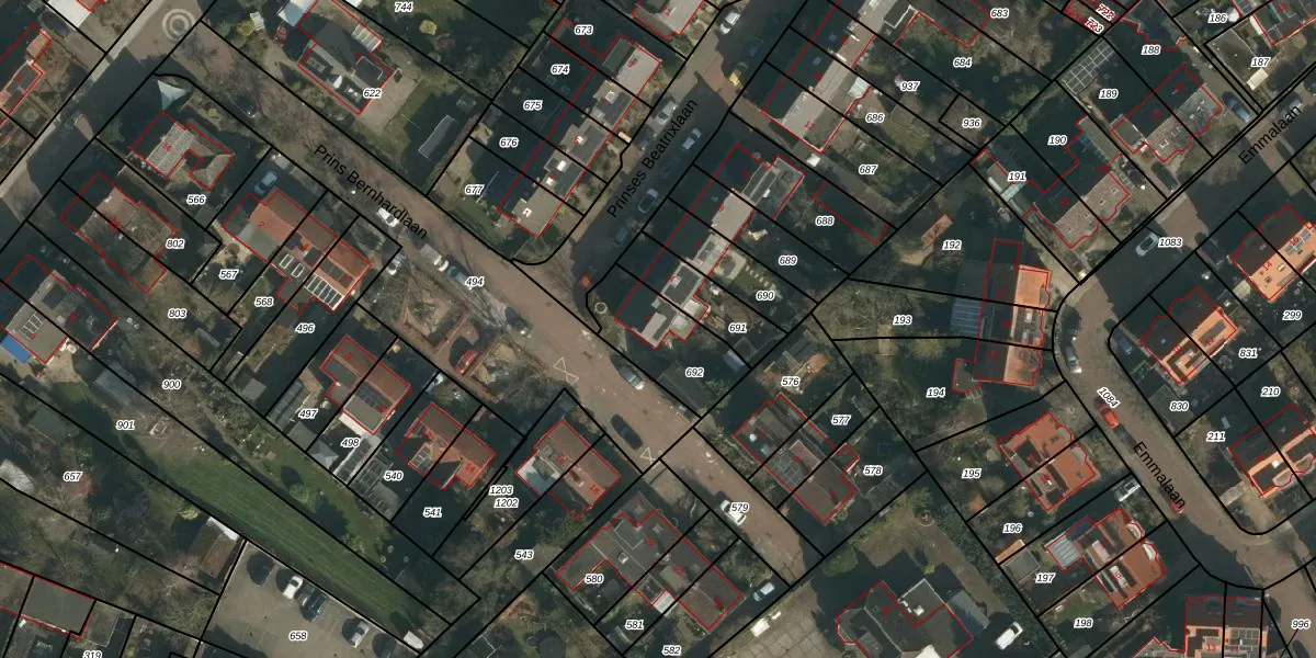 Prinses Beatrixlaan 2 is gelegen op kadastraal perceel GBK00K692. Deze kadastrale aanduiding is uniek en wordt gebruikt door het Kadaster om eigendomsrechten en andere zakelijke rechten vast te leggen. Het perceel maakt onderdeel uit van de kadastrale gemeente Groesbeek.