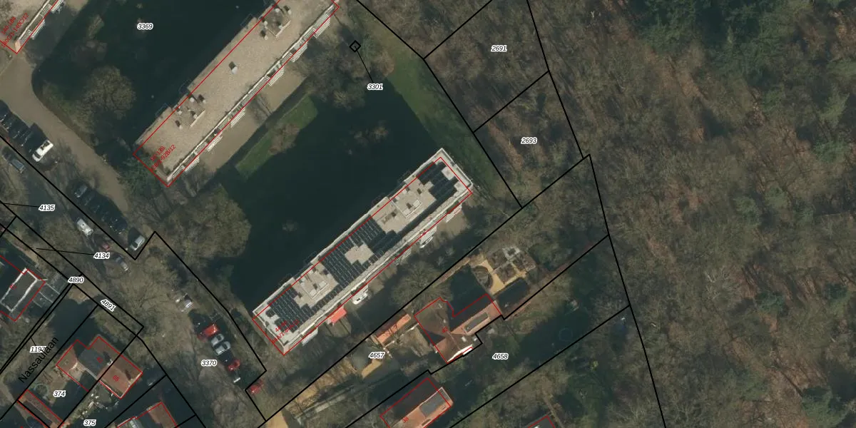 Het perceel waarop het adres ligt is UBG00-B-3369. De afkorting 'UBG00' staat voor kadastrale gemeente Ubbergen. De gemiddelde perceeloppervlakte in de kadastrale gemeente Ubbergen is 2878,61 m². Dit perceel is met zijn 1,4 ha dus groter dan gemiddeld. De grootste perceeloppervlakte in de kadastrale gemeente is 73,7 ha. De kleinste oppervlakte bedraagt 0 m². Op het perceel liggen in totaal 144 adressen. De huidige grenzen van het perceel zijn digitaal in de Basisregistratie Kadaster (BRK) geregistreerd op 25-06-2009.