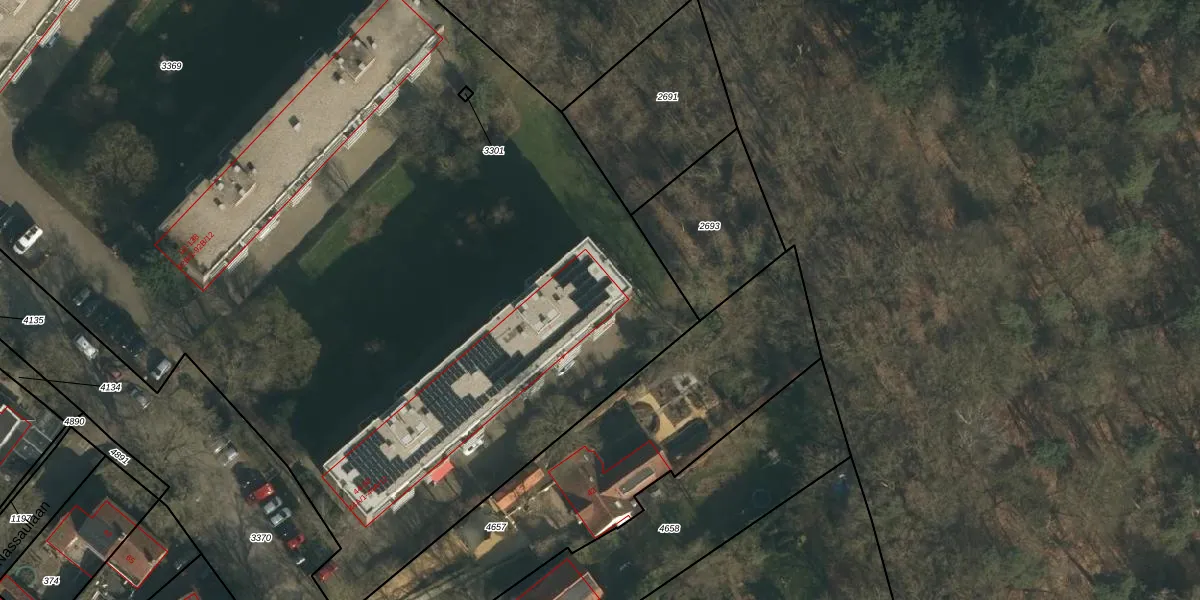 Het perceel waarop het adres ligt is UBG00-B-3369. De afkorting 'UBG00' staat voor kadastrale gemeente Ubbergen. De gemiddelde perceeloppervlakte in de kadastrale gemeente Ubbergen is 2878,61 m². Dit perceel is met zijn 1,4 ha dus groter dan gemiddeld. De grootste perceeloppervlakte in de kadastrale gemeente is 73,7 ha. De kleinste oppervlakte bedraagt 0 m². Op het perceel liggen in totaal 144 adressen. In de Basisregistratie Kadaster (BRK) werden de grenzen van het perceel geregistreerd op 25-06-2009.