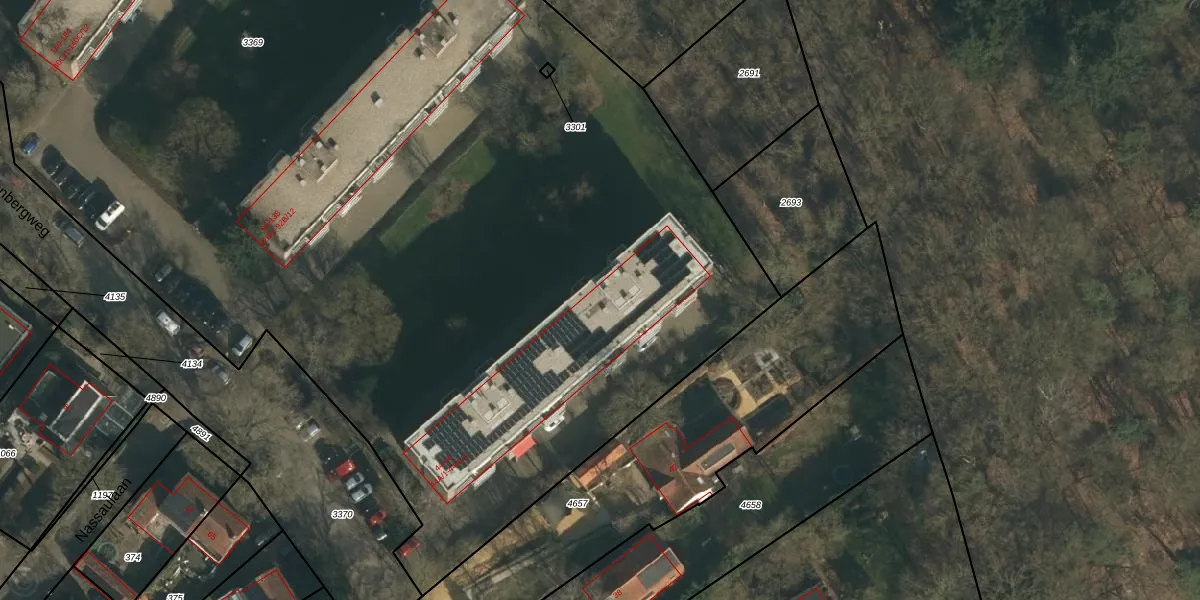 Het perceel waarop het adres ligt is UBG00-B-3369. De afkorting 'UBG00' staat voor kadastrale gemeente Ubbergen. De gemiddelde perceeloppervlakte in de kadastrale gemeente Ubbergen is 2878,61 m². Dit perceel is met zijn 1,4 ha dus groter dan gemiddeld. De grootste perceeloppervlakte in de kadastrale gemeente is 73,7 ha. De kleinste oppervlakte bedraagt 0 m². Op het perceel liggen in totaal 144 adressen. De huidige grenzen van het perceel zijn digitaal in de Basisregistratie Kadaster (BRK) geregistreerd op 25-06-2009.