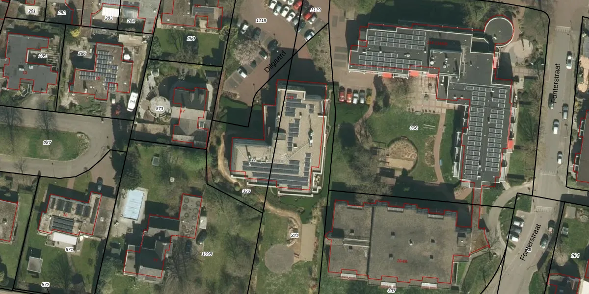 Het perceel waarop Dilgaard 10 staat heeft een oppervlakte van 1865 m². Dit is een zeer groot perceel. De perceeloppervlakte wordt geregistreerd door het Kadaster. Gedetailleerde informatie over de maten van dit perceel kunt u vinden in het rapport Kadastrale kaart met maatvoering van Dilgaard 10.