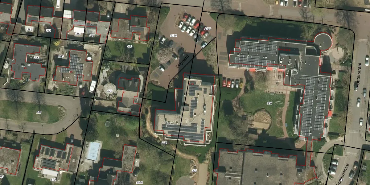 Het perceel waarop Dilgaard 12 staat heeft een oppervlakte van 735 m². Dit is een groot perceel. De perceeloppervlakte wordt geregistreerd door het Kadaster. Gedetailleerde informatie over de maten van dit perceel kunt u vinden in het rapport Kadastrale kaart met maatvoering van Dilgaard 12.