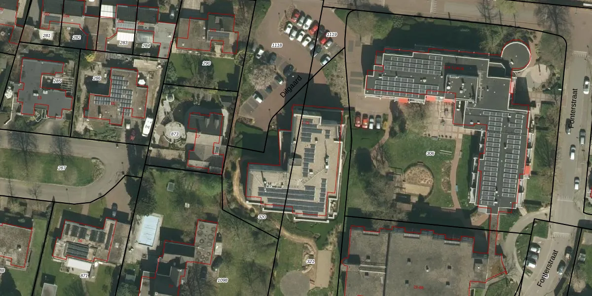 Het perceel waarop Dilgaard 13 staat heeft een oppervlakte van 1865 m². Dit is een zeer groot perceel. De perceeloppervlakte wordt geregistreerd door het Kadaster. Gedetailleerde informatie over de maten van dit perceel kunt u vinden in het rapport Kadastrale kaart met maatvoering van Dilgaard 13.