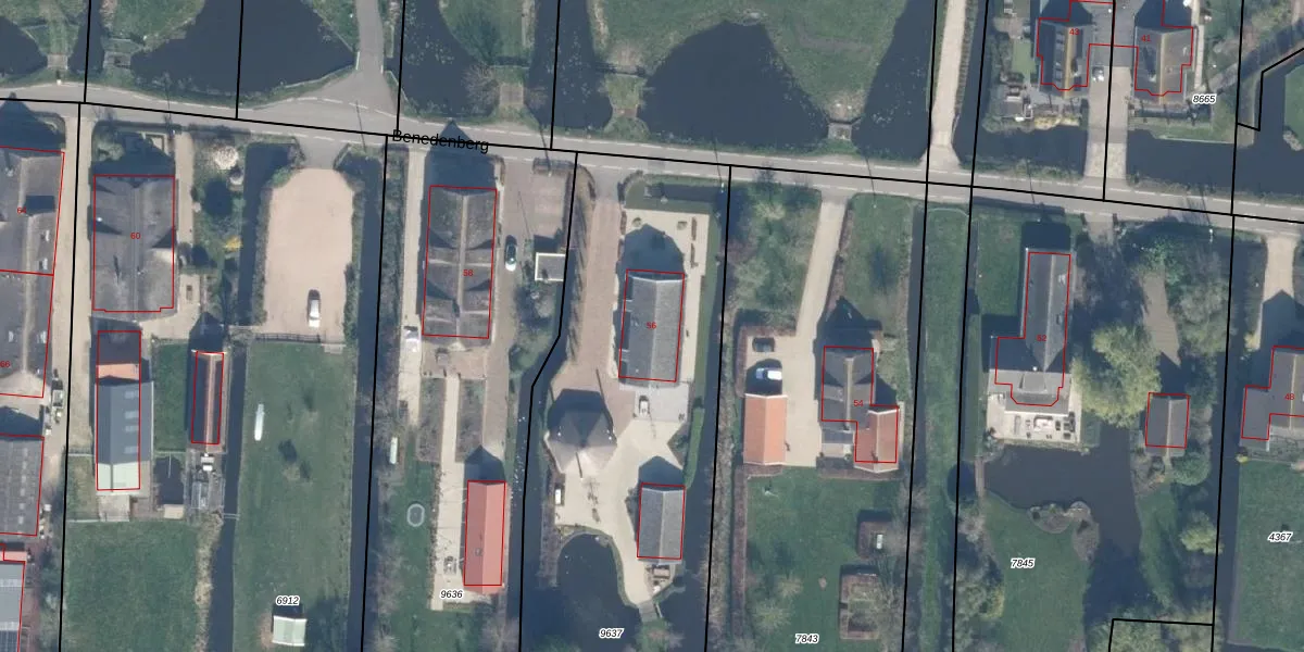 Benedenberg 56 is gelegen op kadastraal perceel BAB00A9637. Deze kadastrale aanduiding is uniek en wordt gebruikt door het Kadaster om eigendomsrechten en andere zakelijke rechten vast te leggen. Het perceel maakt onderdeel uit van de kadastrale gemeente Bergambacht.