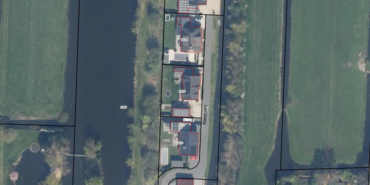 Het perceel waarop Rietzoom 3 staat heeft een oppervlakte van 625 m². Dit is een groot perceel. De perceeloppervlakte wordt geregistreerd door het Kadaster. Gedetailleerde informatie over de maten van dit perceel kunt u vinden in het rapport Kadastrale kaart met maatvoering van Rietzoom 3.