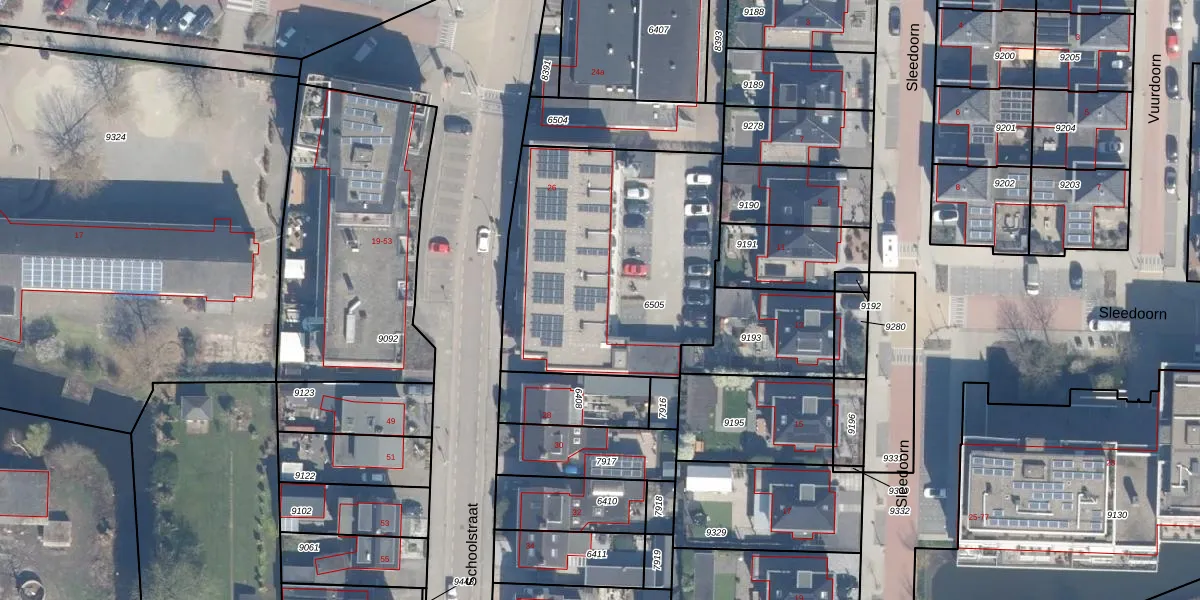 Het perceel waarop Schoolstraat 26-n staat heeft een oppervlakte van 1290 m². Dit is een zeer groot perceel. De perceeloppervlakte wordt geregistreerd door het Kadaster. Gedetailleerde informatie over de maten van dit perceel kunt u vinden in het rapport Kadastrale kaart met maatvoering van Schoolstraat 26-n.