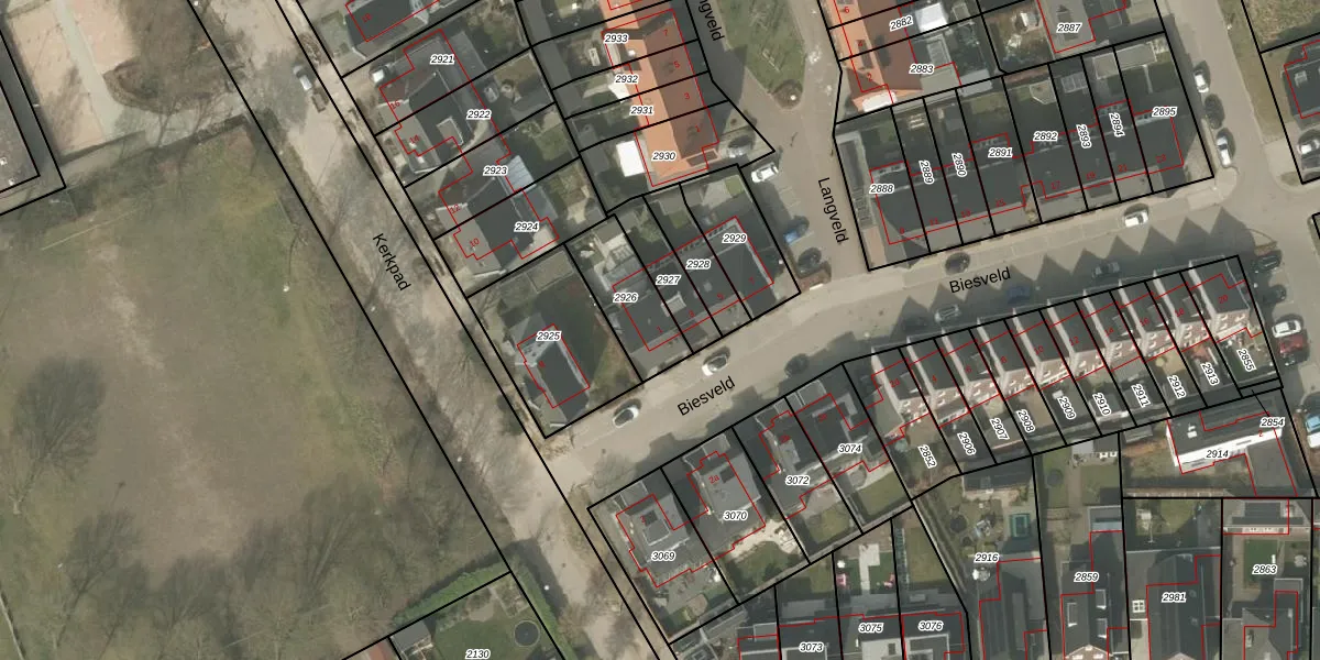 Het perceel waarop Biesveld 1 staat heeft een oppervlakte van 215 m². Dit is een middelgroot perceel. De perceeloppervlakte wordt geregistreerd door het Kadaster. Gedetailleerde informatie over de maten van dit perceel kunt u vinden in het rapport Kadastrale kaart met maatvoering van Biesveld 1.
