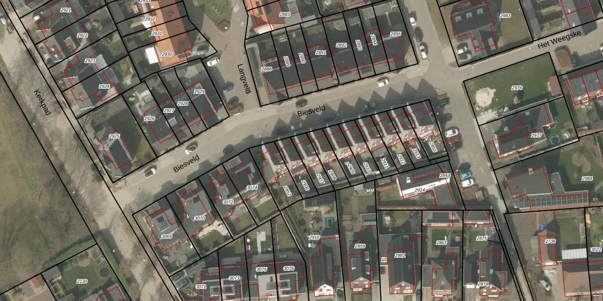 Biesveld 6 is gelegen op kadastraal perceel BEK00E2907. Deze kadastrale aanduiding is uniek en wordt gebruikt door het Kadaster om eigendomsrechten en andere zakelijke rechten vast te leggen. Het perceel maakt onderdeel uit van de kadastrale gemeente Bergeijk.