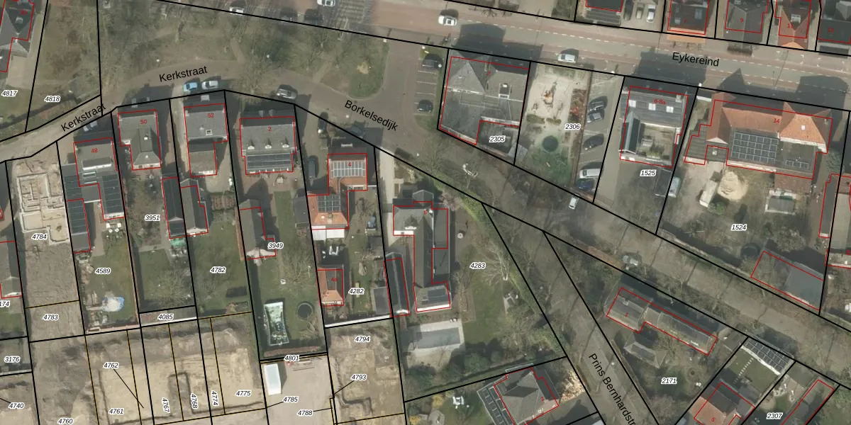 Het perceel waarop Borkelsedijk 6 staat heeft een oppervlakte van 1540 m². Dit is een zeer groot perceel. De perceeloppervlakte wordt geregistreerd door het Kadaster. Gedetailleerde informatie over de maten van dit perceel kunt u vinden in het rapport Kadastrale kaart met maatvoering van Borkelsedijk 6.
