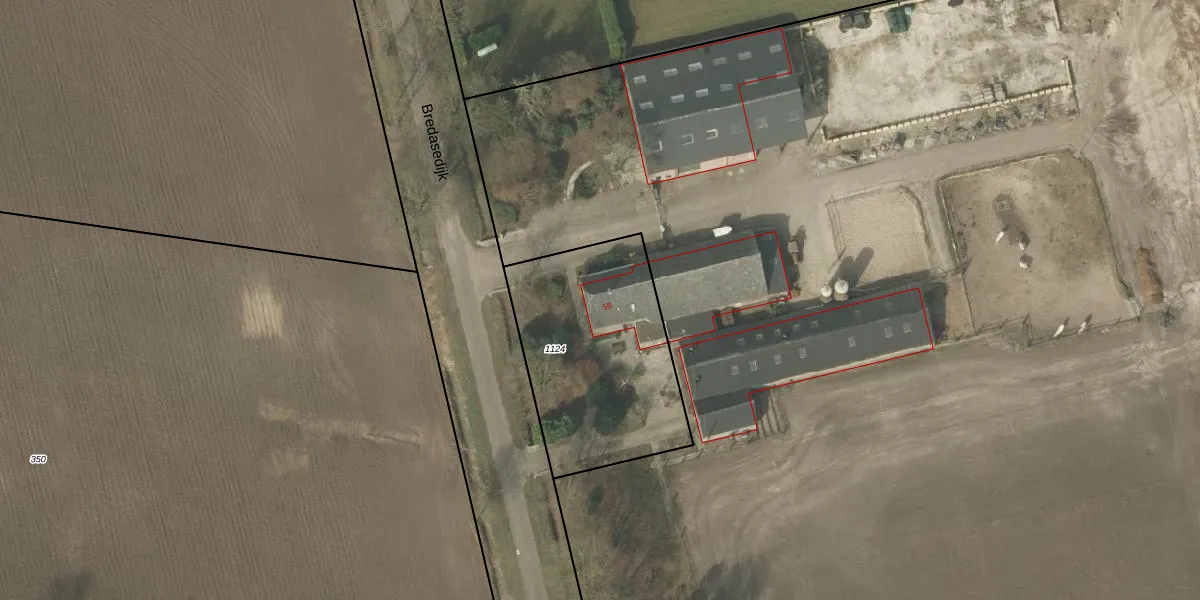 Bredasedijk 55 is gelegen op kadastraal perceel BEK00H1124. Deze kadastrale aanduiding is uniek en wordt gebruikt door het Kadaster om eigendomsrechten en andere zakelijke rechten vast te leggen. Het perceel maakt onderdeel uit van de kadastrale gemeente Bergeijk.