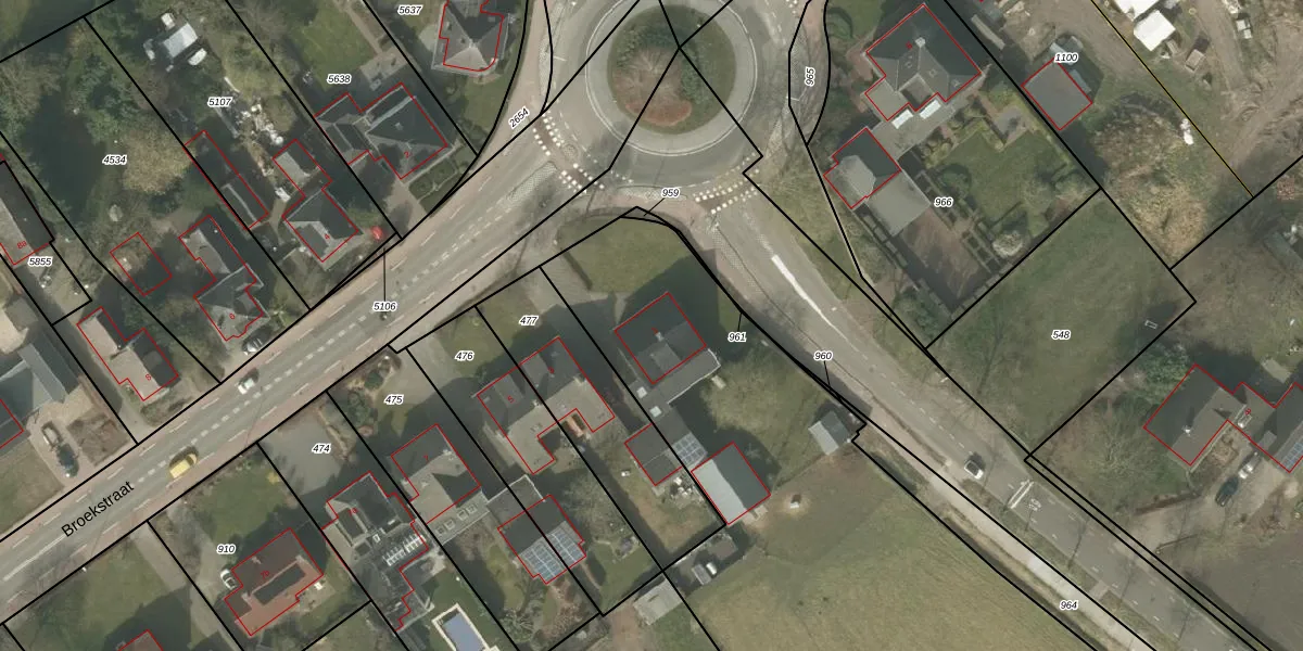 Het perceel waarop Broekstraat 1 staat heeft een oppervlakte van 7810 m². Dit is een zeer groot perceel. De perceeloppervlakte wordt geregistreerd door het Kadaster. Gedetailleerde informatie over de maten van dit perceel kunt u vinden in het rapport Kadastrale kaart met maatvoering van Broekstraat 1.