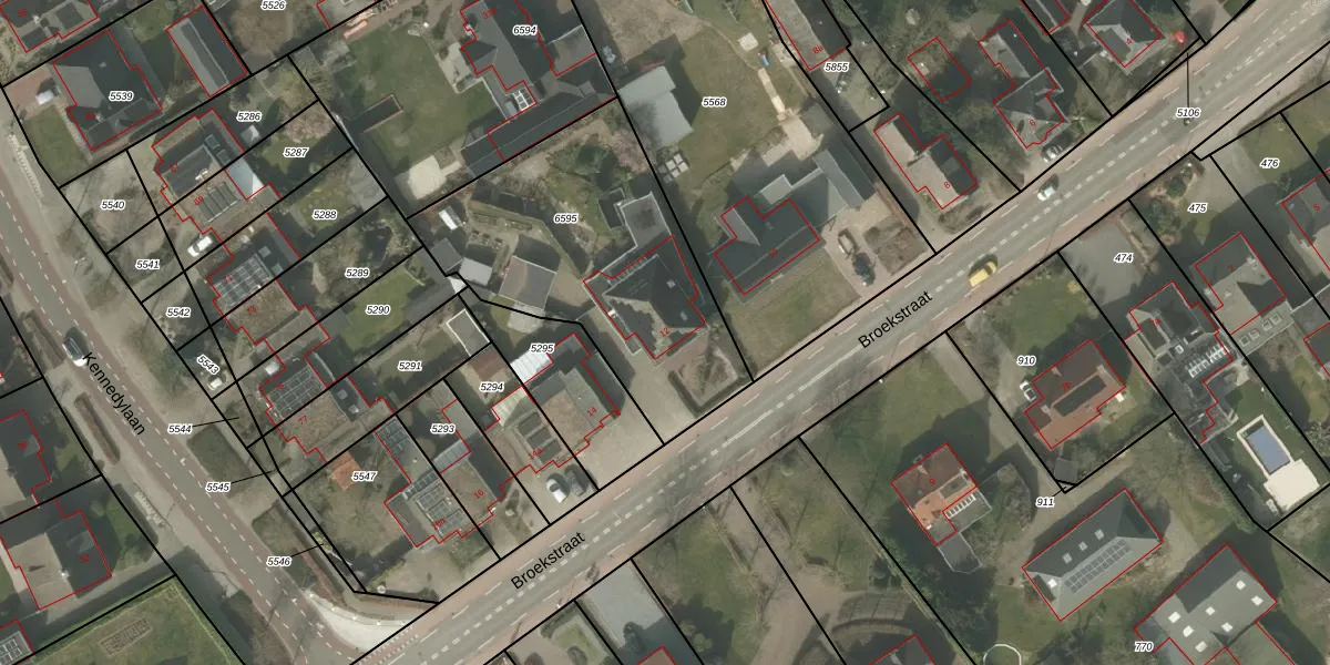 Het perceel waarop Broekstraat 12 staat heeft een oppervlakte van 1225 m². Dit is een zeer groot perceel. De perceeloppervlakte wordt geregistreerd door het Kadaster. Gedetailleerde informatie over de maten van dit perceel kunt u vinden in het rapport Kadastrale kaart met maatvoering van Broekstraat 12.