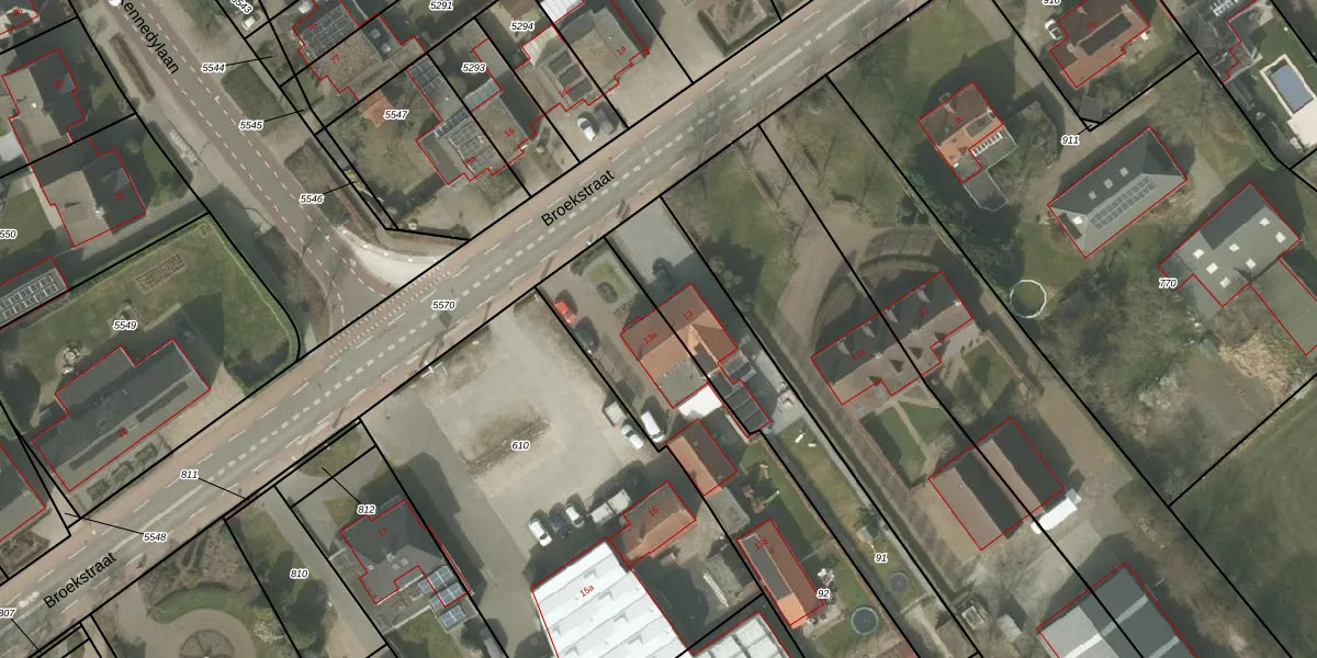 Broekstraat 13-a is gelegen op kadastraal perceel BEK00H92. Deze kadastrale aanduiding is uniek en wordt gebruikt door het Kadaster om eigendomsrechten en andere zakelijke rechten vast te leggen. Het perceel maakt onderdeel uit van de kadastrale gemeente Bergeijk.