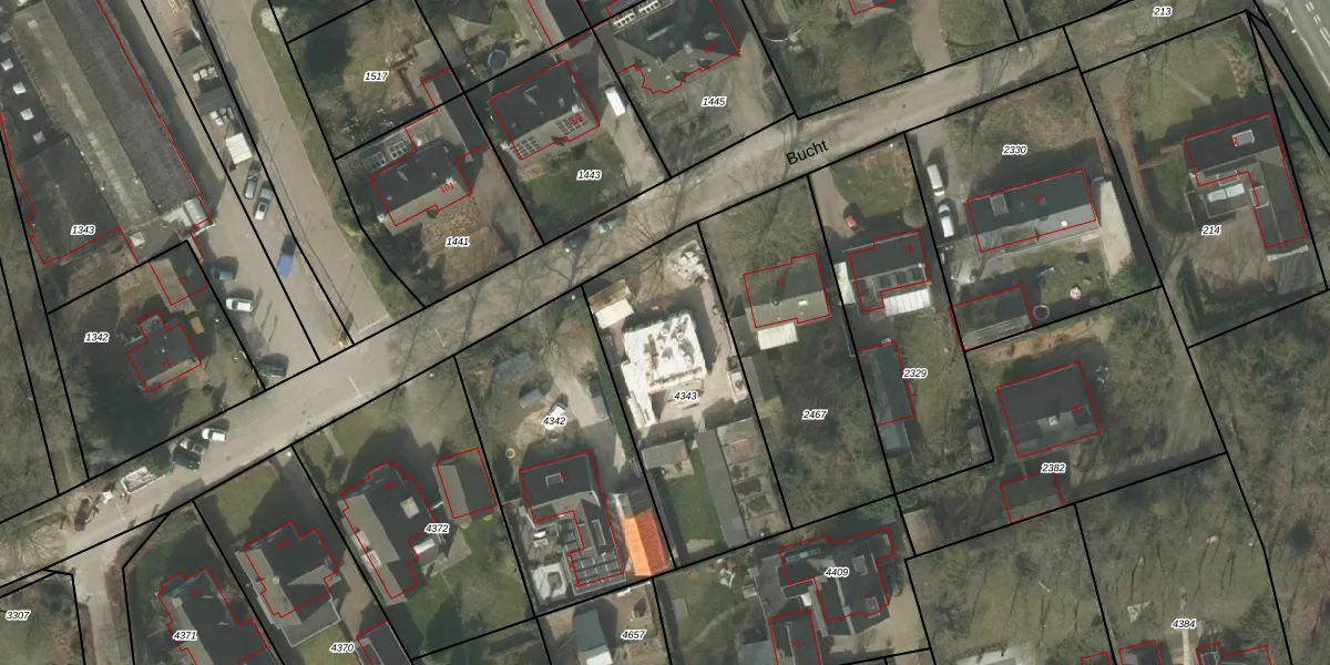 Het perceel waarop Bucht 72-a staat heeft een oppervlakte van 888 m². Dit is een groot perceel. De perceeloppervlakte wordt geregistreerd door het Kadaster. Gedetailleerde informatie over de maten van dit perceel kunt u vinden in het rapport Kadastrale kaart met maatvoering van Bucht 72-a.