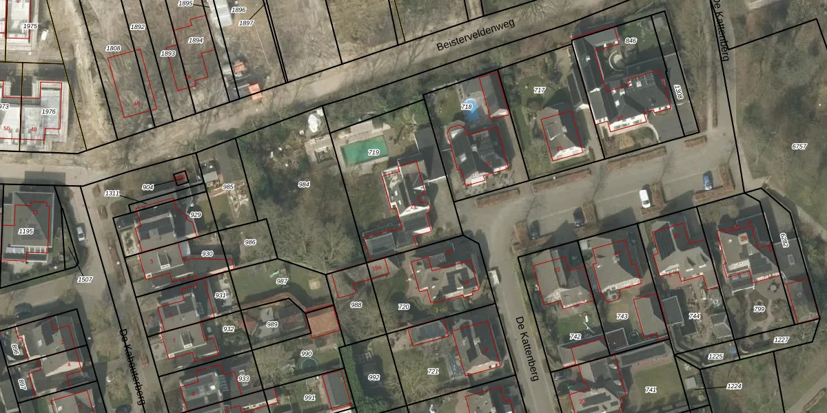 Het perceel waarop De Kattenberg 21 staat heeft een oppervlakte van 811 m². Dit is een groot perceel. De perceeloppervlakte wordt geregistreerd door het Kadaster. Gedetailleerde informatie over de maten van dit perceel kunt u vinden in het rapport Kadastrale kaart met maatvoering van De Kattenberg 21.