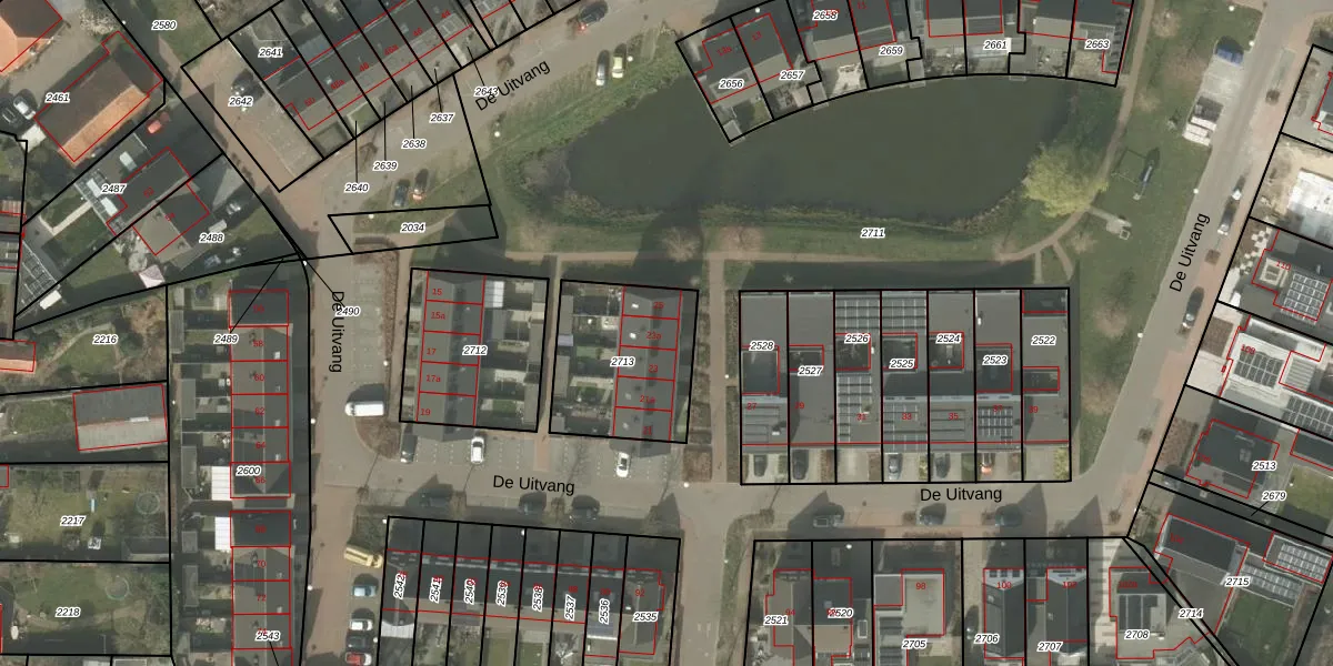 De Uitvang 23-a is gelegen op kadastraal perceel BEK00C2713. Deze kadastrale aanduiding is uniek en wordt gebruikt door het Kadaster om eigendomsrechten en andere zakelijke rechten vast te leggen. Het perceel maakt onderdeel uit van de kadastrale gemeente Bergeijk.