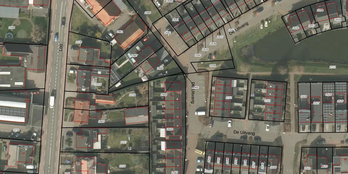 De Uitvang 56 is gelegen op kadastraal perceel BEK00C2600. Deze kadastrale aanduiding is uniek en wordt gebruikt door het Kadaster om eigendomsrechten en andere zakelijke rechten vast te leggen. Het perceel maakt onderdeel uit van de kadastrale gemeente Bergeijk.