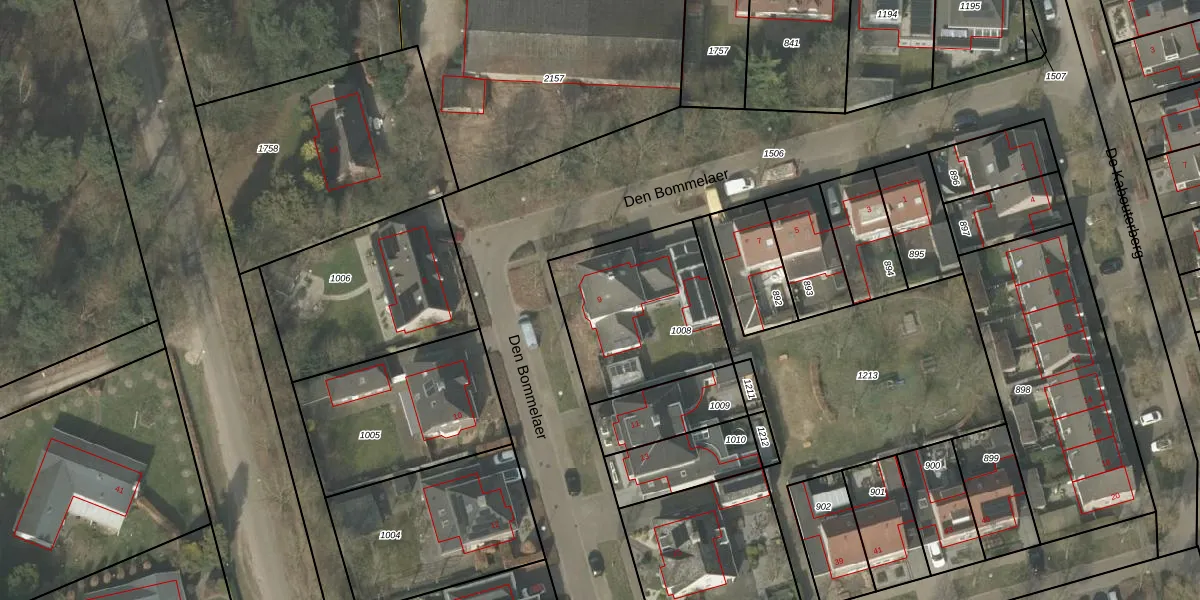 Den Bommelaer 9 is gelegen op kadastraal perceel BEK00I1008. Deze kadastrale aanduiding is uniek en wordt gebruikt door het Kadaster om eigendomsrechten en andere zakelijke rechten vast te leggen. Het perceel maakt onderdeel uit van de kadastrale gemeente Bergeijk.