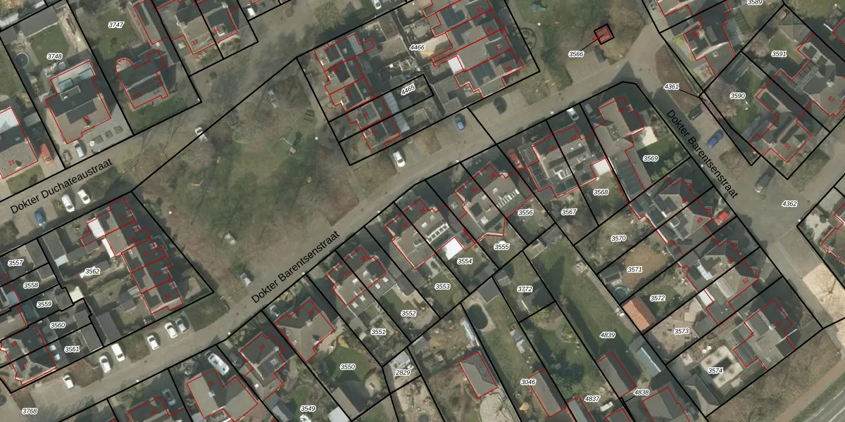 Dokter Barentsenstraat 34 is gelegen op kadastraal perceel BEK00B3554. Deze kadastrale aanduiding is uniek en wordt gebruikt door het Kadaster om eigendomsrechten en andere zakelijke rechten vast te leggen. Het perceel maakt onderdeel uit van de kadastrale gemeente Bergeijk.