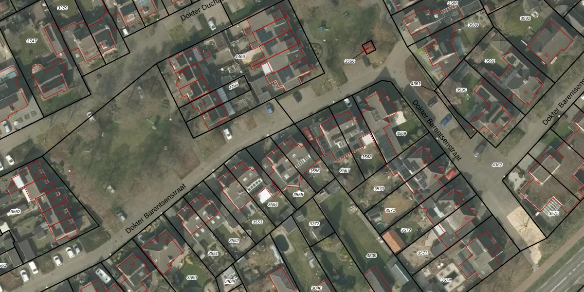 Dokter Barentsenstraat 38 is gelegen op kadastraal perceel BEK00B3556. Deze kadastrale aanduiding is uniek en wordt gebruikt door het Kadaster om eigendomsrechten en andere zakelijke rechten vast te leggen. Het perceel maakt onderdeel uit van de kadastrale gemeente Bergeijk.