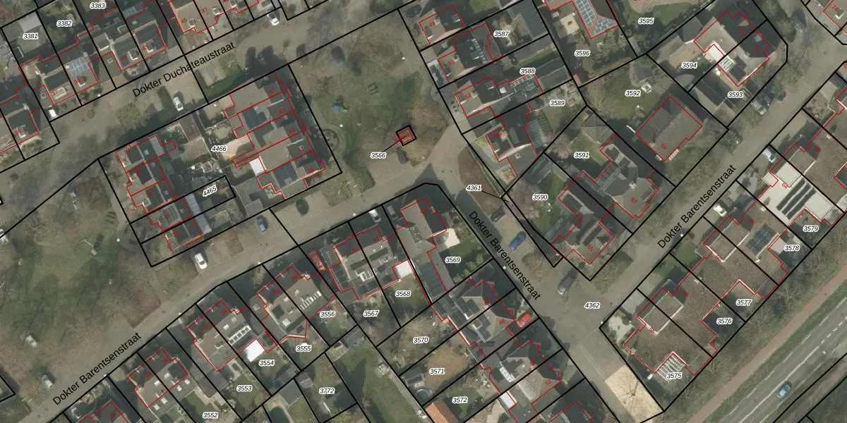 Gebruik de zoekbalk of klik op een perceel voor informatie over de adressen binnen dit perceel.