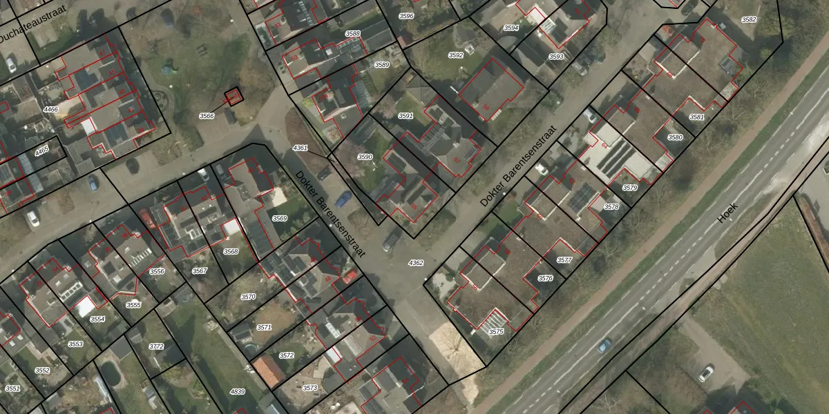 Dokter Barentsenstraat 55 is gelegen op kadastraal perceel BEK00B3590. Deze kadastrale aanduiding is uniek en wordt gebruikt door het Kadaster om eigendomsrechten en andere zakelijke rechten vast te leggen. Het perceel maakt onderdeel uit van de kadastrale gemeente Bergeijk.
