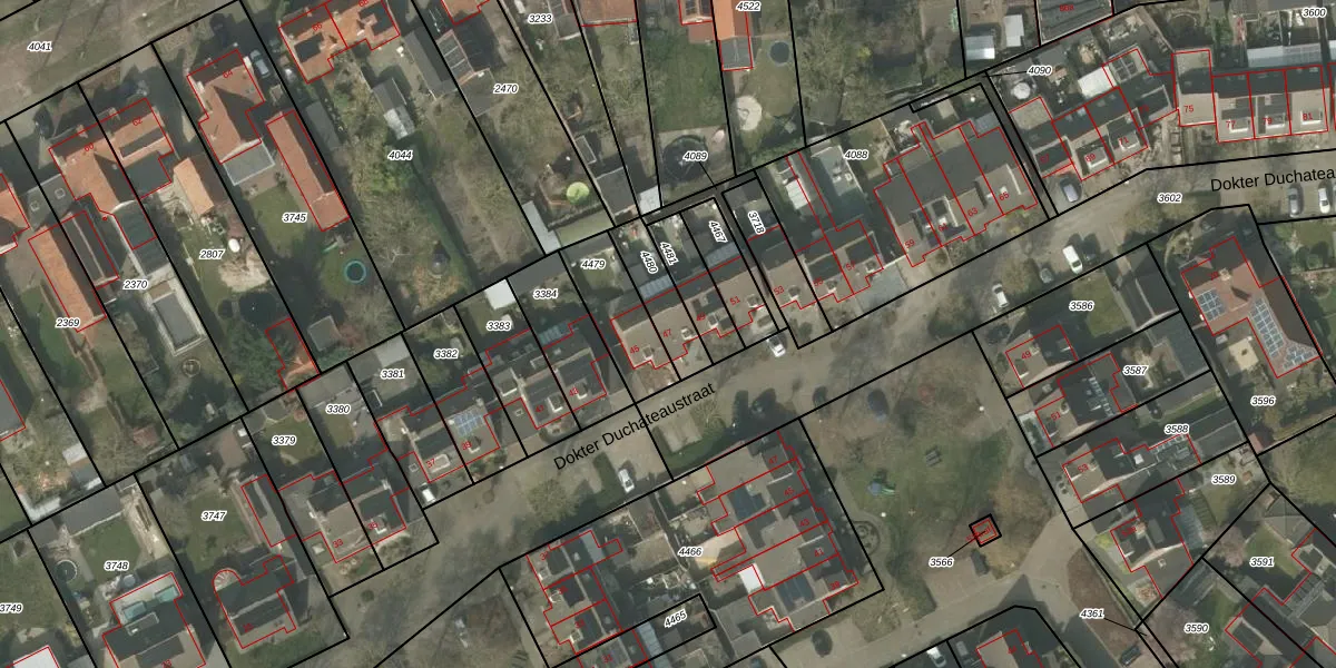 Dokter Duchateaustraat 47 is gelegen op kadastraal perceel BEK00B4480. Deze kadastrale aanduiding is uniek en wordt gebruikt door het Kadaster om eigendomsrechten en andere zakelijke rechten vast te leggen. Het perceel maakt onderdeel uit van de kadastrale gemeente Bergeijk.