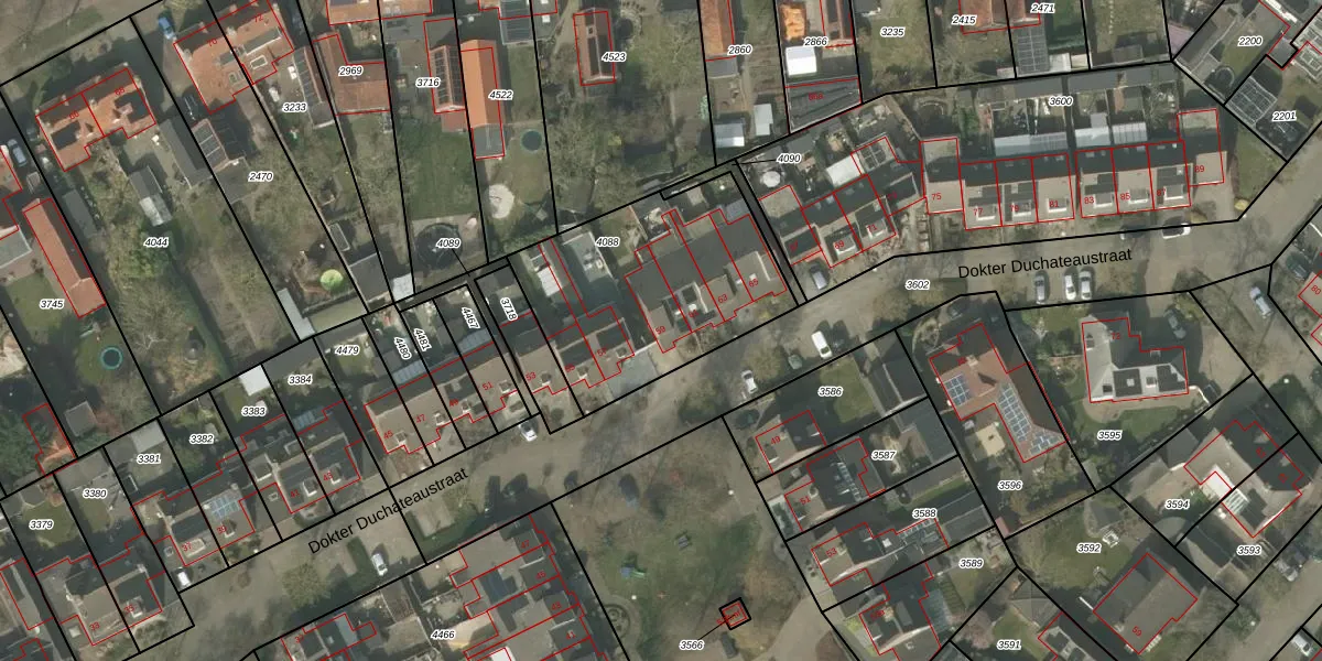 Het perceel waarop Dokter Duchateaustraat 59 staat heeft een oppervlakte van 909 m². Dit is een groot perceel. De perceeloppervlakte wordt geregistreerd door het Kadaster. Gedetailleerde informatie over de maten van dit perceel kunt u vinden in het rapport Kadastrale kaart met maatvoering van Dokter Duchateaustraat 59.